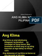 Anu-ano ang uri ng klima sa pilipinas. Basa o tag-ulan naman mula Mayo hanggang Oktubre. May kinalaman sa klima ang uri ng ating kasuotan at mga bahay na itinayo natin.